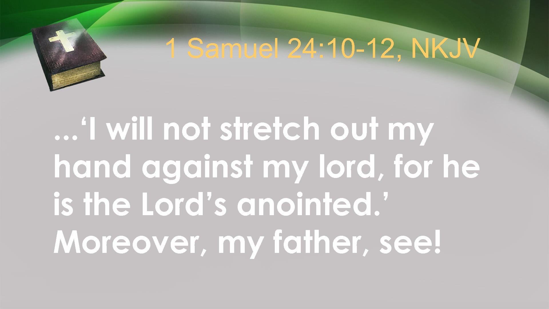 1 Samuel 24: 10 -12, NKJV . . . ‘I will not stretch out my hand against my lord, for he is the Lord’s anointed. ’ Moreover, my father, see!