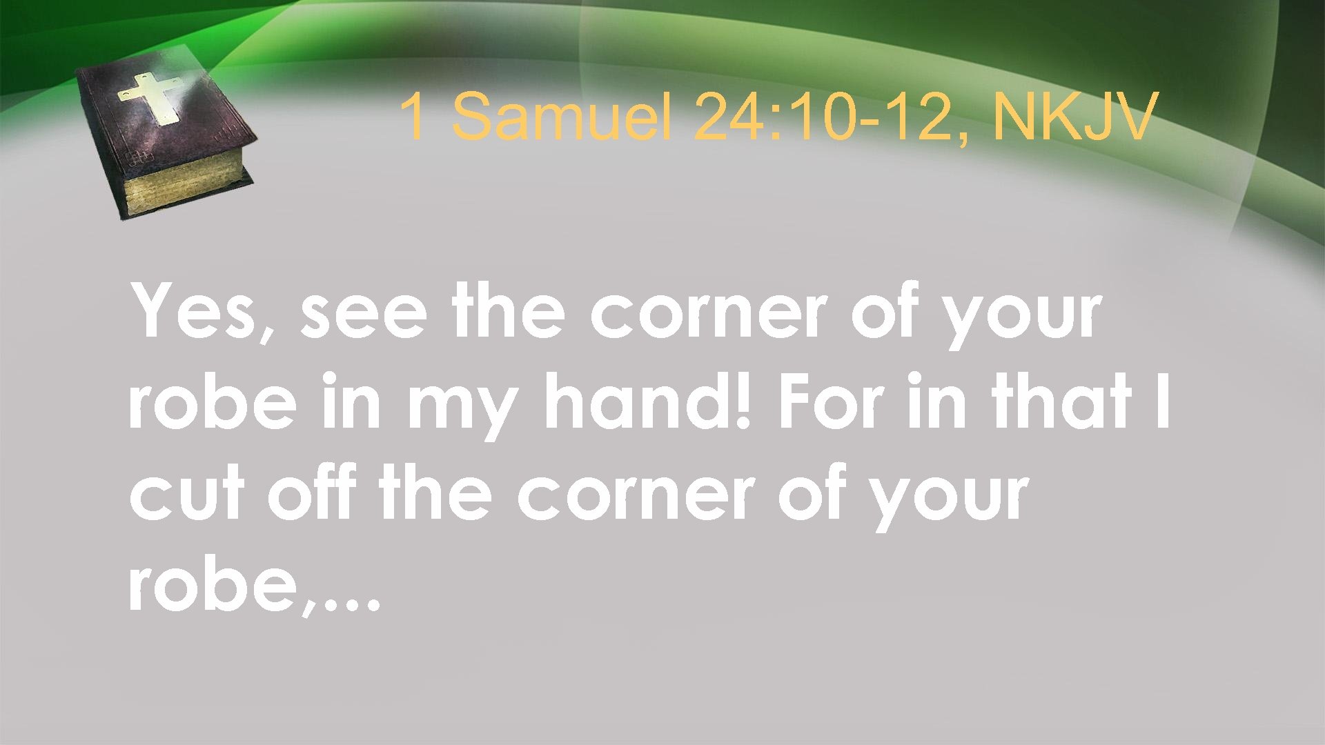 1 Samuel 24: 10 -12, NKJV Yes, see the corner of your robe in my hand! For in that I cut off the corner of your robe, . . .