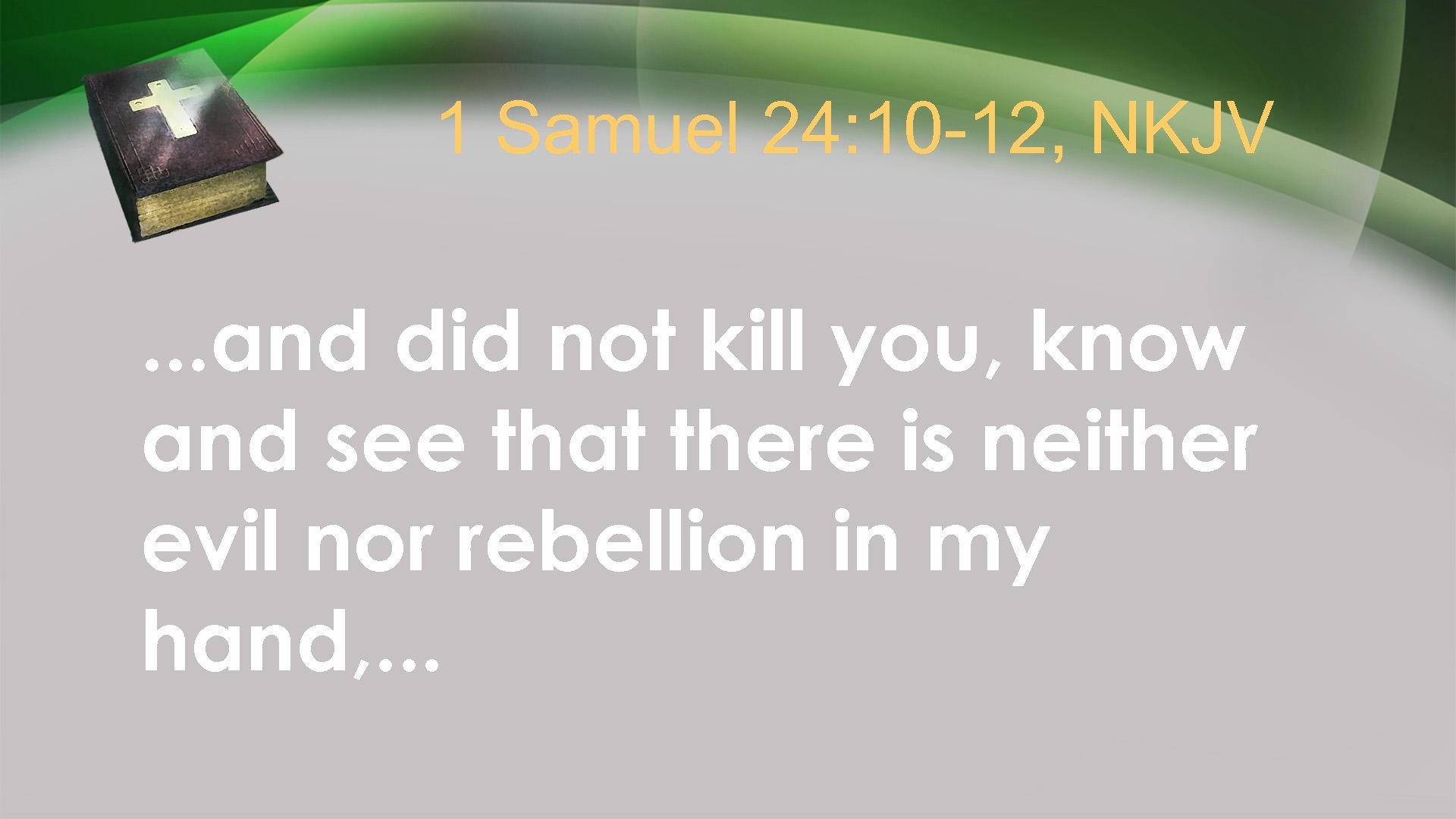 1 Samuel 24: 10 -12, NKJV . . . and did not kill you, know and see that there is neither evil nor rebellion in my hand, . . .