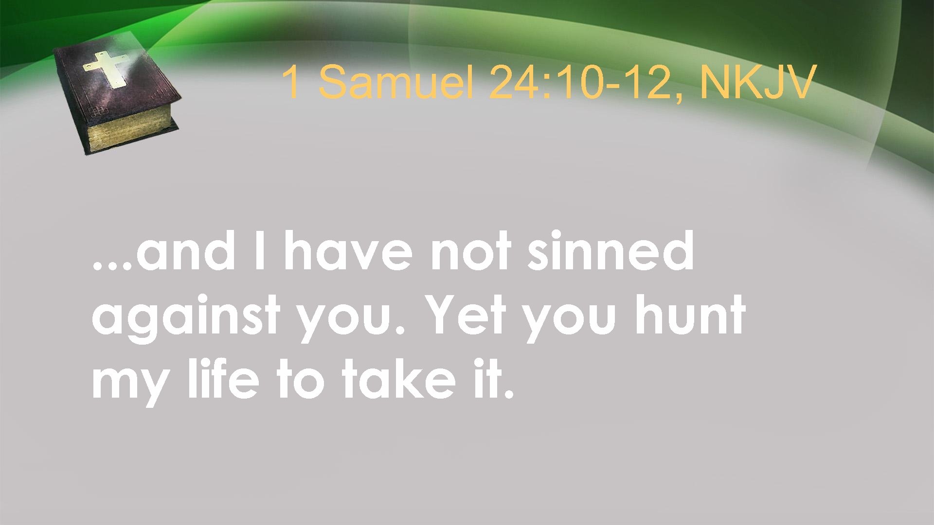 1 Samuel 24: 10 -12, NKJV . . . and I have not sinned against you. Yet you hunt my life to take it.