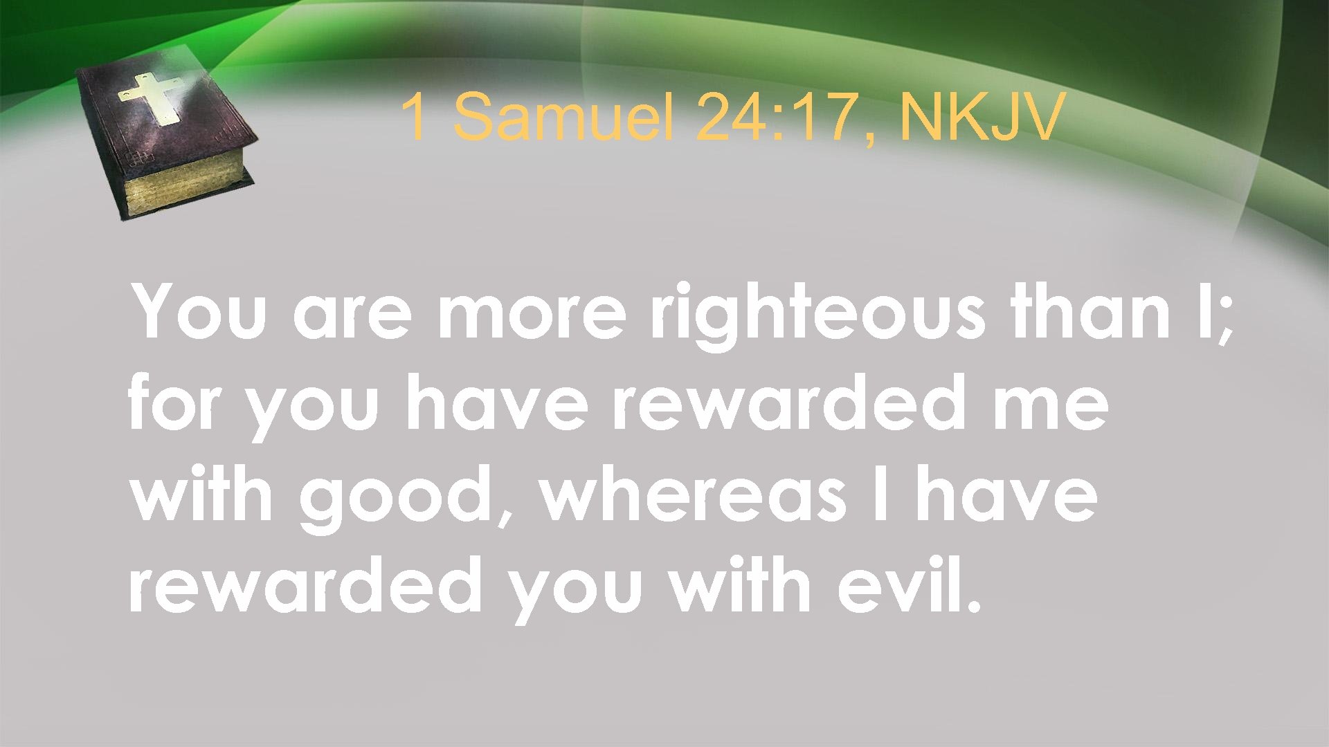 1 Samuel 24: 17, NKJV You are more righteous than I; for you have rewarded me with good, whereas I have rewarded you with evil.