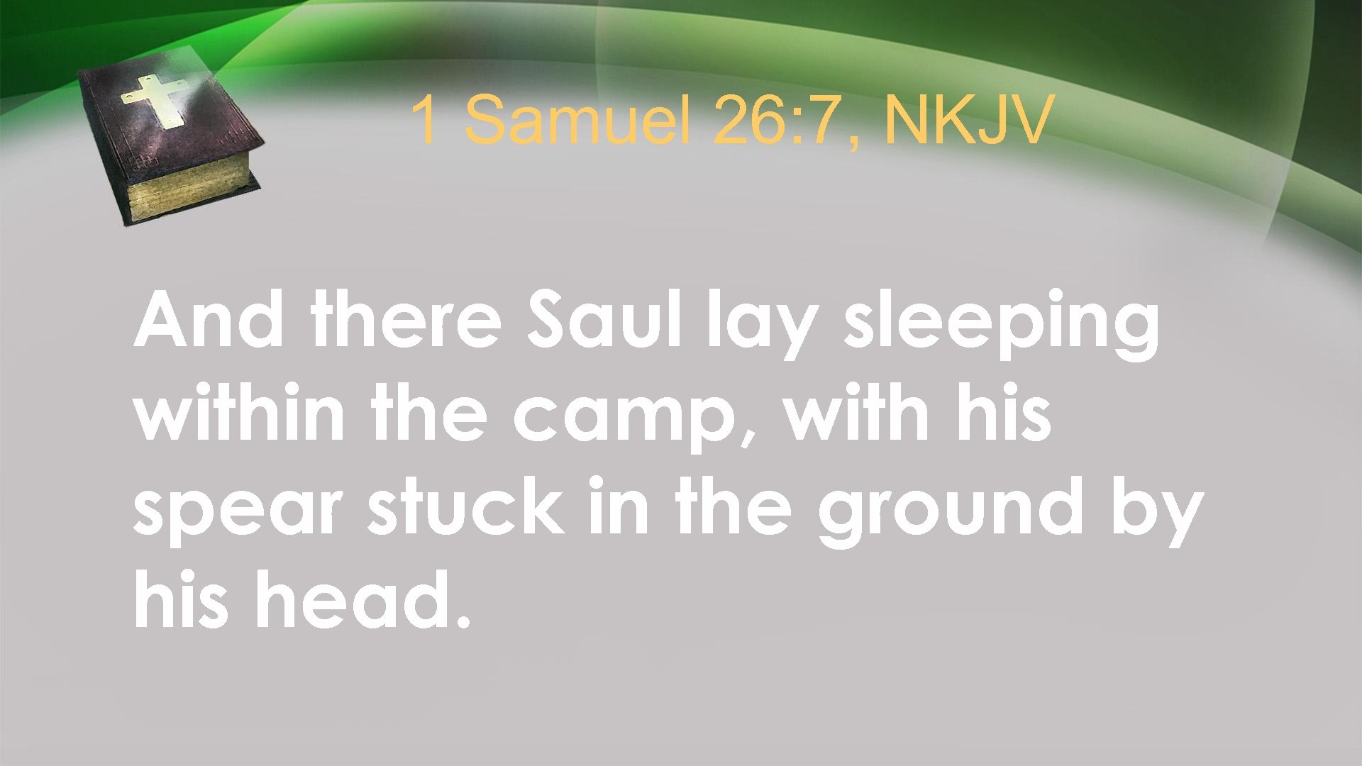 1 Samuel 26: 7, NKJV And there Saul lay sleeping within the camp, with his spear stuck in the ground by his head.