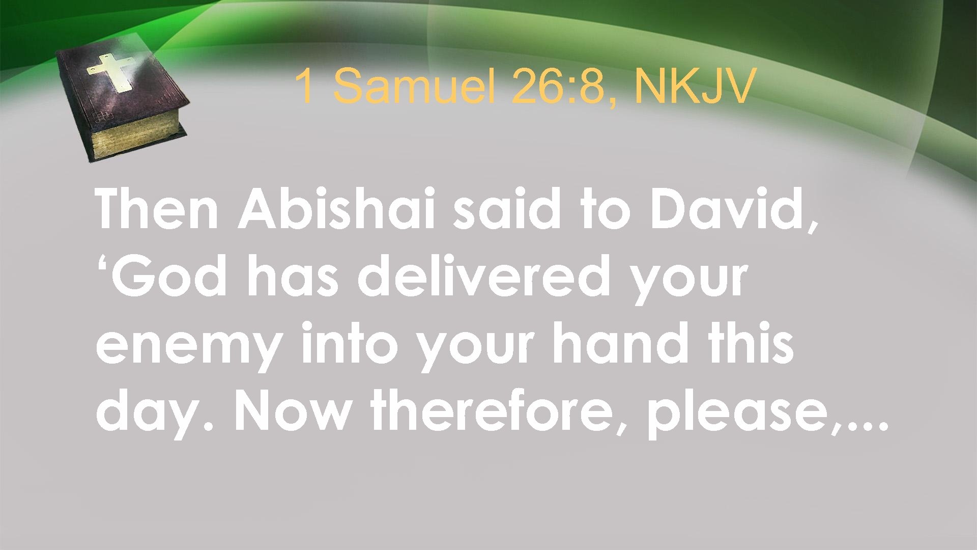 1 Samuel 26: 8, NKJV Then Abishai said to David, ‘God has delivered your enemy into your hand this day. Now therefore, please, . . .