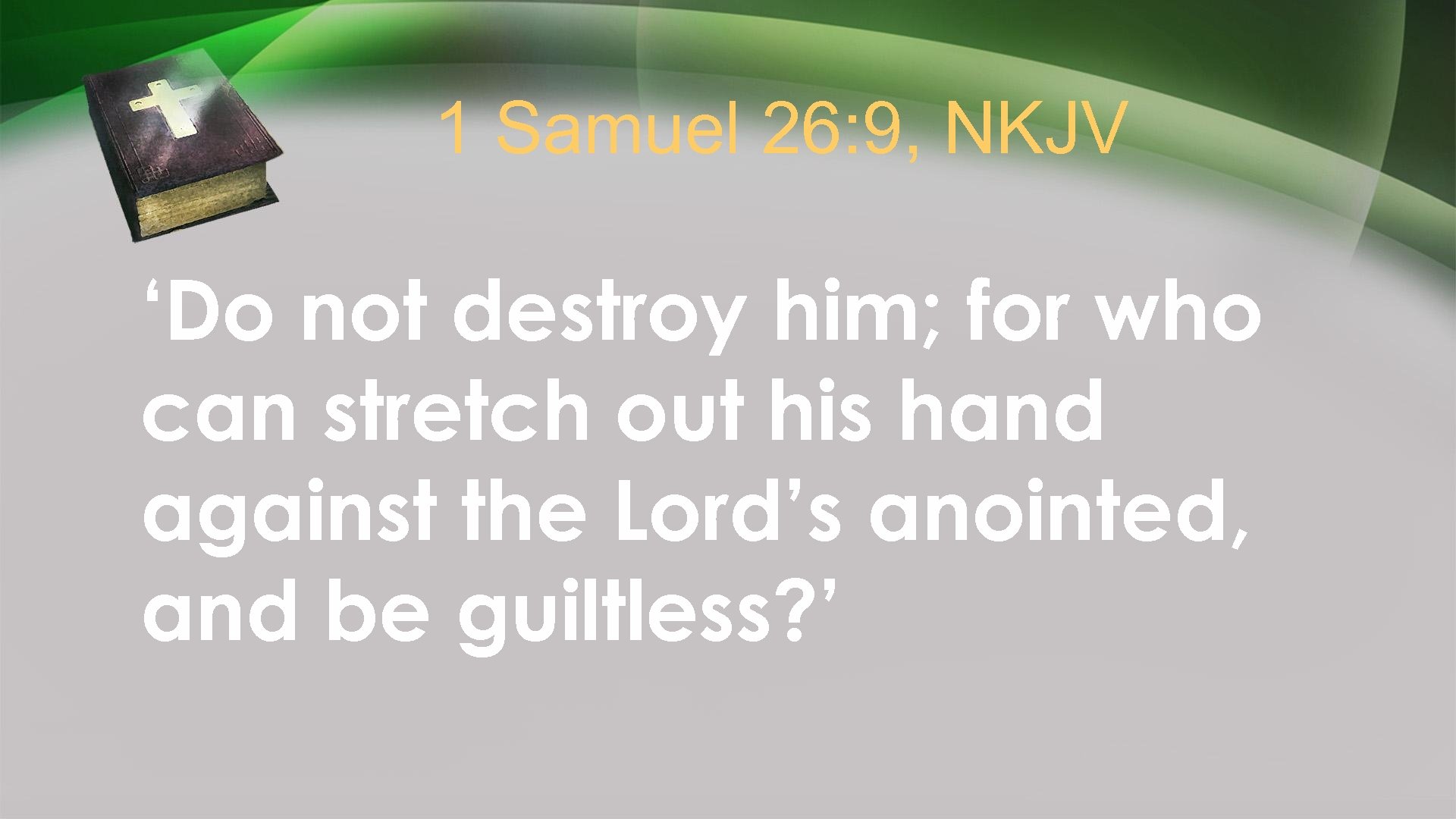 1 Samuel 26: 9, NKJV ‘Do not destroy him; for who can stretch out his hand against the Lord’s anointed, and be guiltless? ’