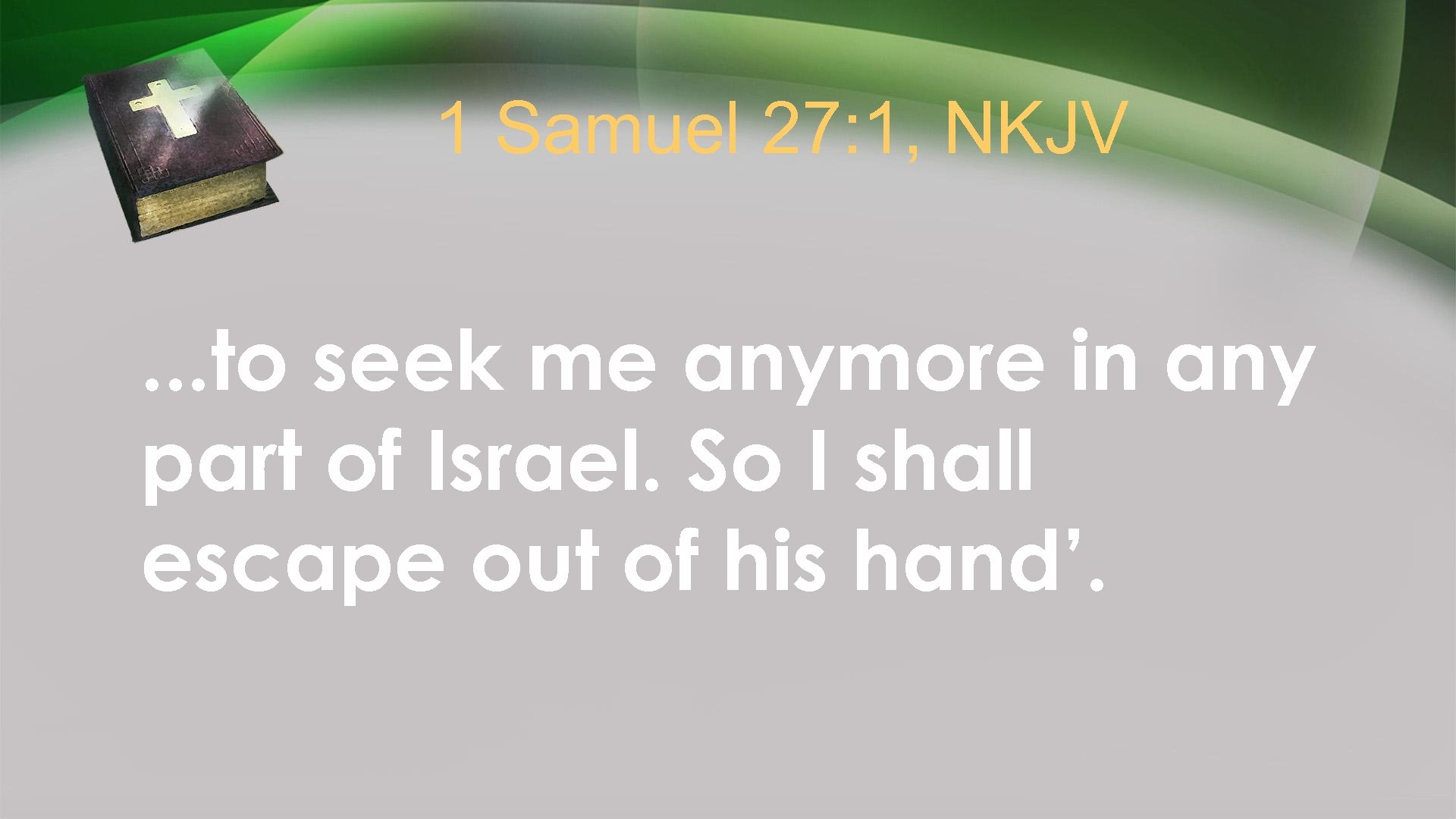 1 Samuel 27: 1, NKJV . . . to seek me anymore in any part of Israel. So I shall escape out of his hand’.