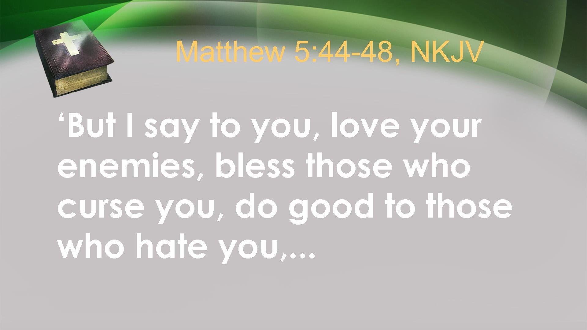 Matthew 5: 44 -48, NKJV ‘But I say to you, love your enemies, bless those who curse you, do good to those who hate you, . . .