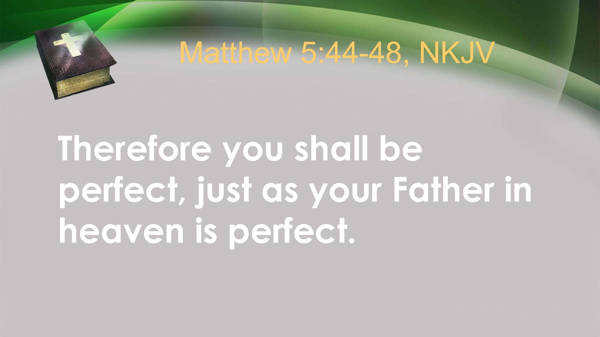 Matthew 5: 44 -48, NKJV Therefore you shall be perfect, just as your Father in heaven is perfect.