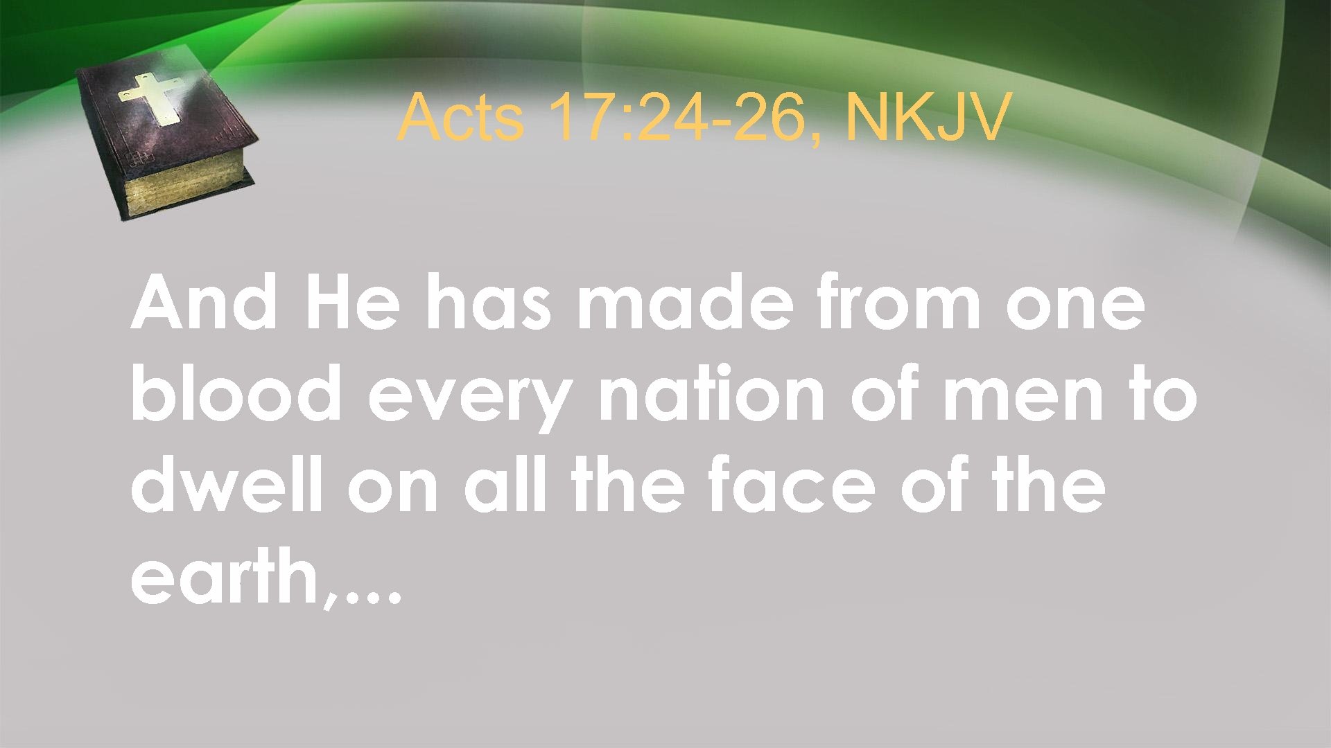 Acts 17: 24 -26, NKJV And He has made from one blood every nation of men to dwell on all the face of the earth, . . .