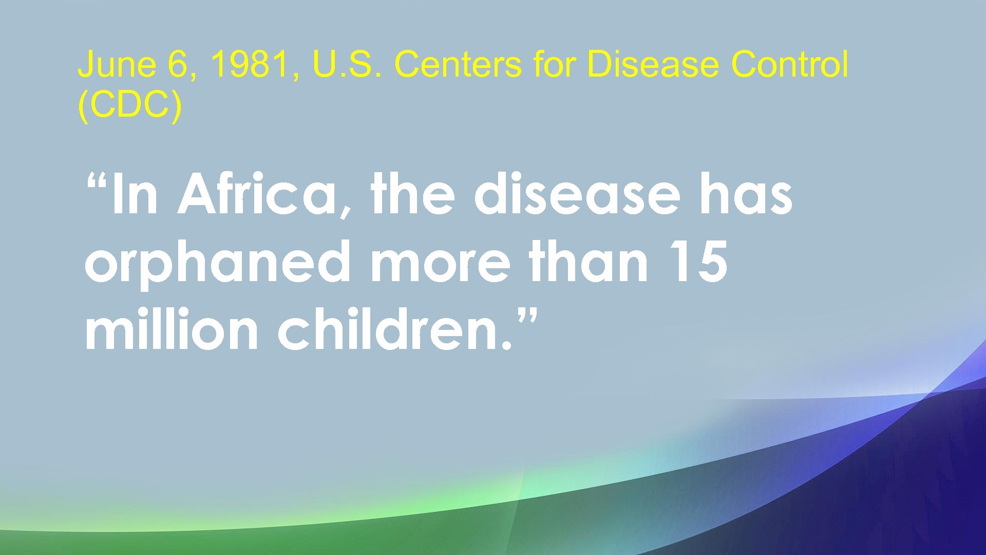 June 6, 1981, U. S. Centers for Disease Control (CDC) “In Africa, the disease has orphaned more than 15 million children. ”