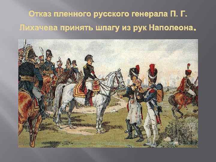 Отказ пленного русского генерала П. Г. Лихачева принять шпагу из рук Наполеона.