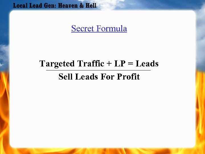 Secret Formula Targeted Traffic + LP = Leads Sell Leads For Profit
