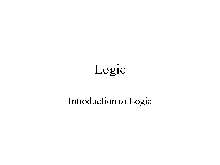 Logic Introduction to Logic