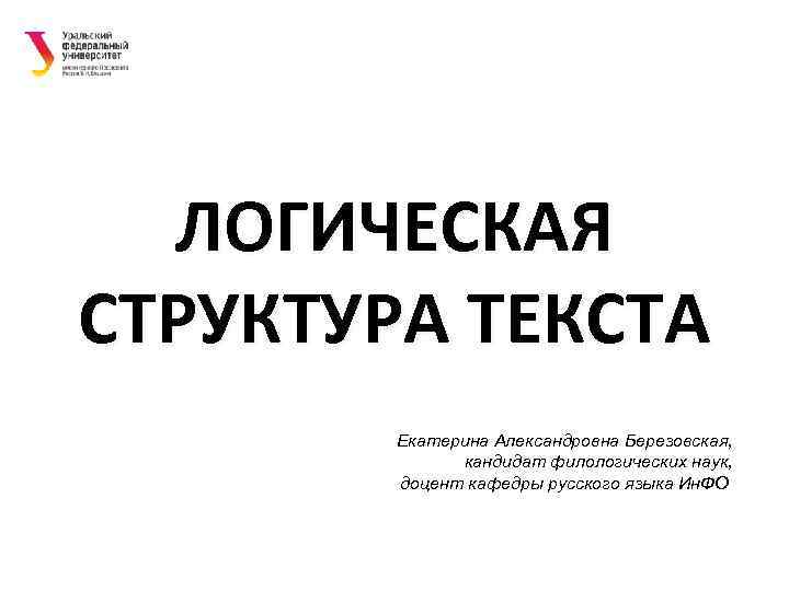 ЛОГИЧЕСКАЯ СТРУКТУРА ТЕКСТА Екатерина Александровна Березовская, кандидат филологических наук, доцент кафедры русского языка Ин. ФО