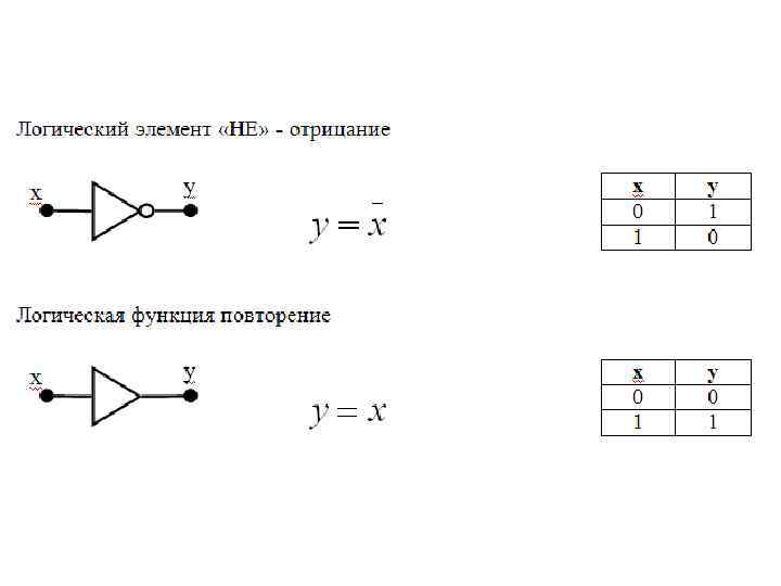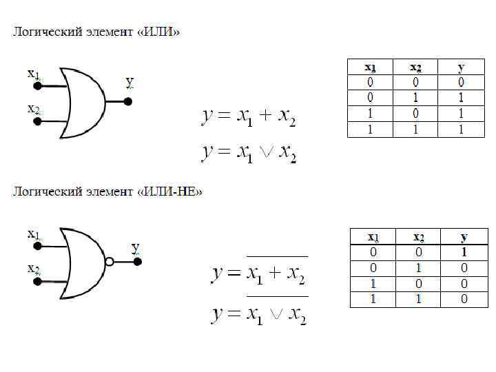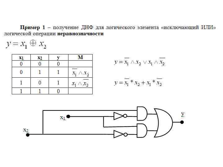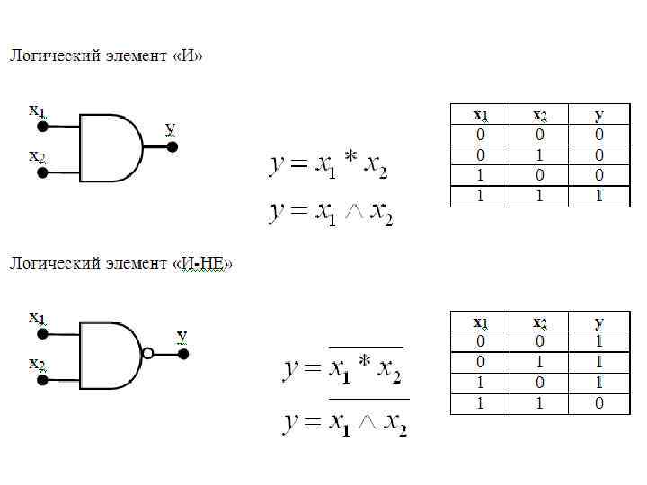 Основные логические функции и элементы Логический элемент это схема, которая реализует элементарные логические операции над двоичными переменными. Таблица истинности — это совокупность всех возможных комбинаций логических сигналов на входе цифрового устройства и значений выходных сигналов для каждой комбинации. Минтерм — булева функция, принимающая истинное значение лишь при одной-единственной комбинации своих аргументов.