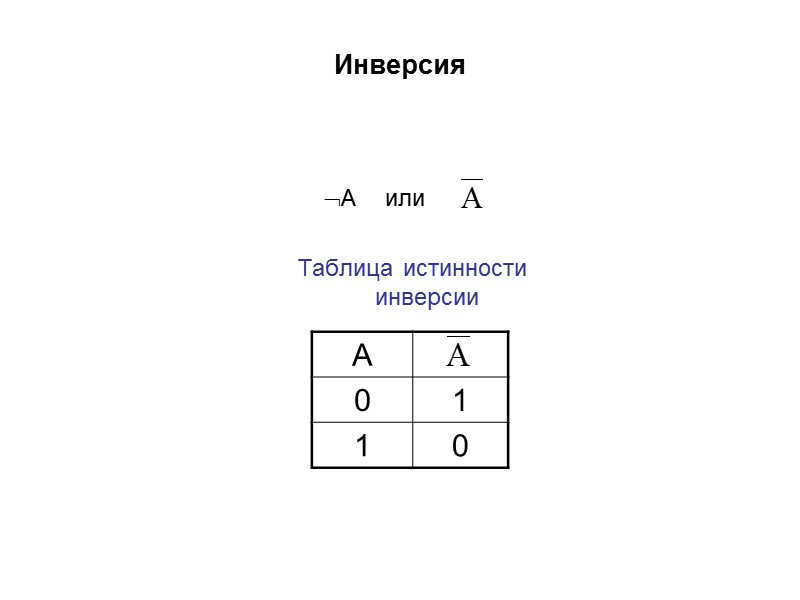 Инверсия А или Таблица истинности инверсии