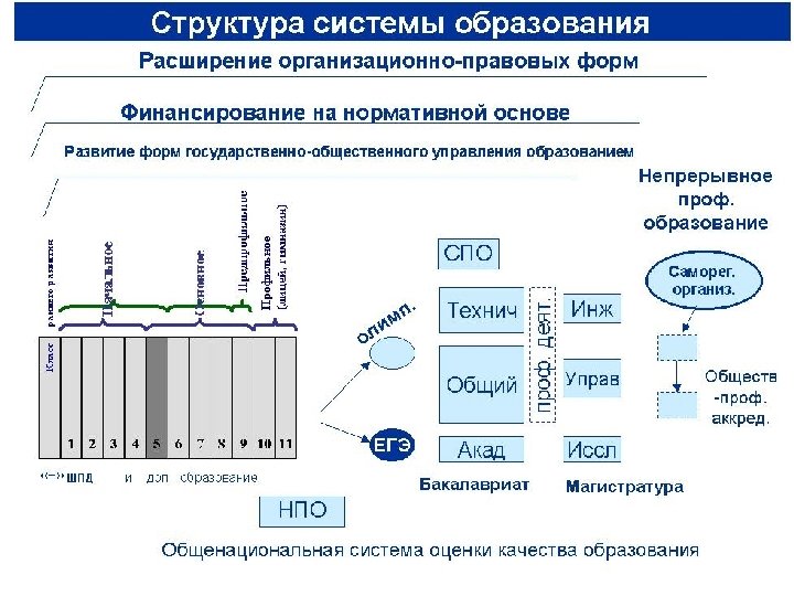 Система мероприятий по развитию образования (2005 -2010) 06 Общенац. университеты 06 Системообр. (отбор) вузы (отбор) 06 Высшая школа бакалавриат магистратура модули 07 Стандарты бакалавриата 07 Стандарты магистратуры Проф. -квал. структура 07 обр. технологии Кред. -мод. структура Обр. технологии мех. финансир. 05 -08 06 Новые ОПФ Модели ИСУ вуза Интегрир. модель фин. (НПФ, ГВС, Об. кредиты) Общ. -проф. организации (отбор) кредиты 07 Сертифик. квалификац. 07 Общее образование в НПО 09 ЕГЭ 2: маг. ЕГЭ 3: асп. 08 Работодатели и НПО Стандарты НПО и СПО 08 ЕГЭ 11 + ЕГЭ 9 Общенац. сист. оценки качества 09 Общ. -проф. организации 07 рейтинги сертификация Распространение опыта / Внедрение / Введение «Операторы» единых госэкзаменов ЕГЭ 2 ЕГЭ 3 Учреждение ПО, ориент. на соврем. рынок труда Повышение кач-ва и доступн. общего образ. 07 09 Министерство/Агентство/Службы) «Предшкола» 07 Профильное обучение (корректир. ) ИСУП аккредитация 08 08 новые ОПФ 08 Стандарты общего образования ИСУ 07 ИСУ «отрасли» Федеральная сеть центров оценки качества (создание мат. -тех. инфраструктуры)