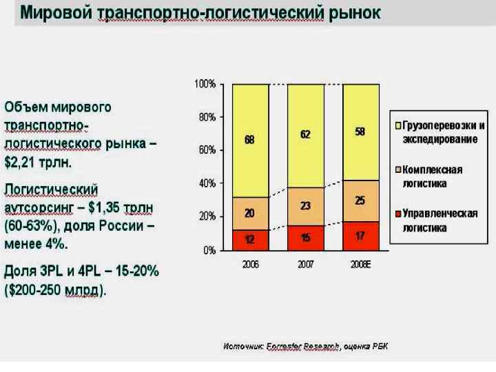 Процесс глобализации, рост мировой экономики и международного товарообмена повлек за собой рост спроса на профессиональные логистические услуги 3 PL-провайдеров (Third parti Logistics Services Providers).