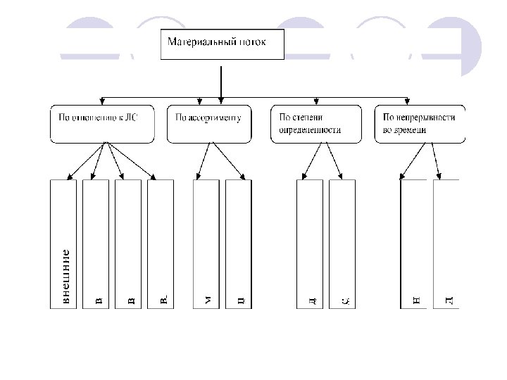 Определение материального потока Материальный поток это товарно-материальные ценности, находящиеся в состоянии движения или покоя, к которым применяются логистические операции, связанные с их преобразованием в процессе производства продукта или услуги, отнесенные к временному интервалу.