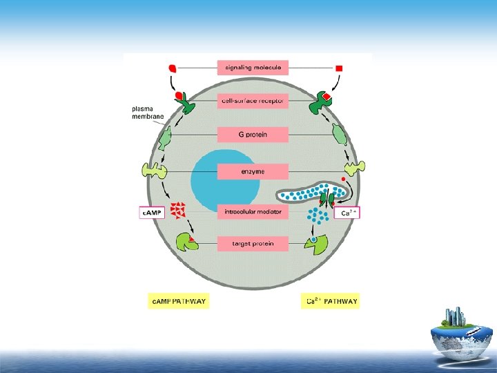 Pathways of signal transduction mediated by GProtein-Linked receptor A biological active substance which specifically binds membranous receptor is called ligand. The important pathways are as follows: l The receptor-G protein–c. AMP pathway; l The receptor-G protein–Ca 2+ pathway;