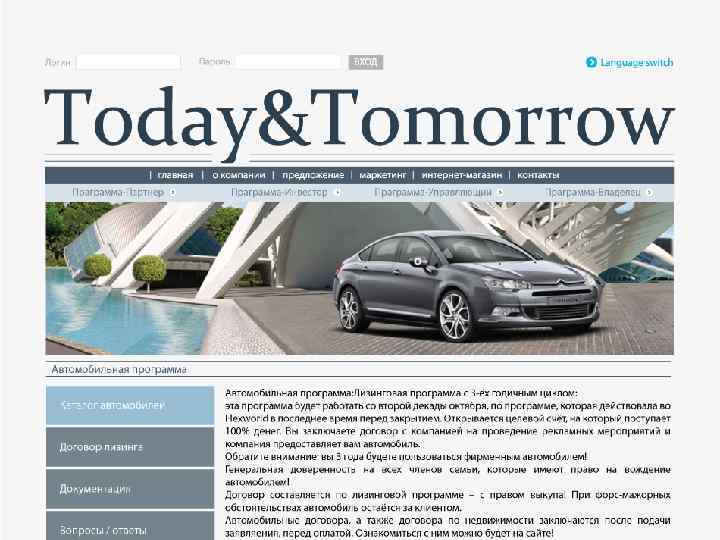 § Автомобильная программа: § Лизинговая программа с 3 -ёх годичным циклом: Открывается целевой счёт, на который поступает 100% денег. Вы заключаете договор с компанией на проведение рекламных мероприятий и компания предоставляет вам автомобиль.
