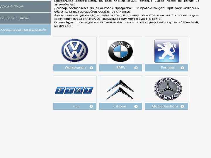 § Автомобильные договора, а также договора по недвижимости заключаются после подачи заявляения, перед оплатой. Ознакомиться с ним можно будет на сайте! § Оплата будет производиться на банковские счета и по международным картам – VIZAclassik, Master Card.