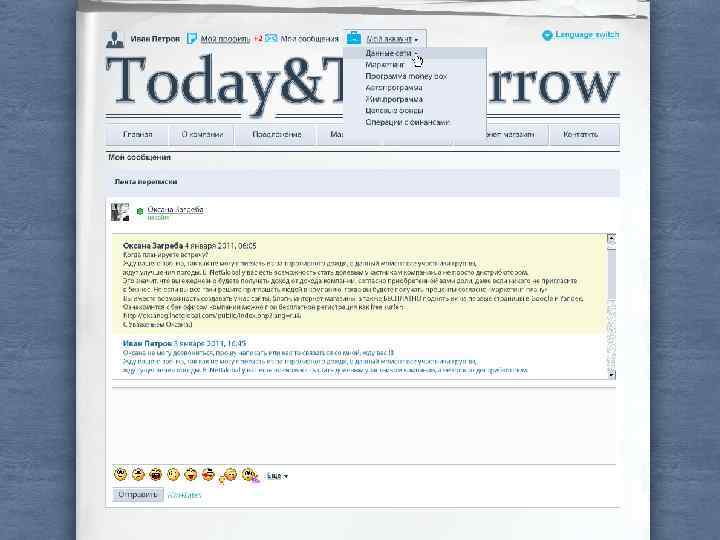 § Клиентская программа. Стать клиентом. Вы являетесь клиентом компании "Today and Tomorrow" с 1 апреля 2009 Пожалуйста, подготавливайте отсканированные документы в следующих форматах: doc, rtf, pdf, docx, xlsx, txt Клиентский договор. doc (Rus) Добавить подписанный договор с компанией