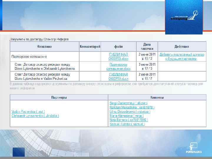 § Партнеры Клиенты Vadim Pecheritsa ( test ) Oleksandr Lytovchenko ( ukroleks ) § Клиенты Sergii Zadorozhnyi ( all-zer ) Raikhan Mukasheva ( rairitm 878 ) Liliya Dobrodeyeva ( visteriya ) Maria Afanasieva ( mrija ) Nina Botnaru ( cz 70817846 ) Samuel Gazdik ( samuel )