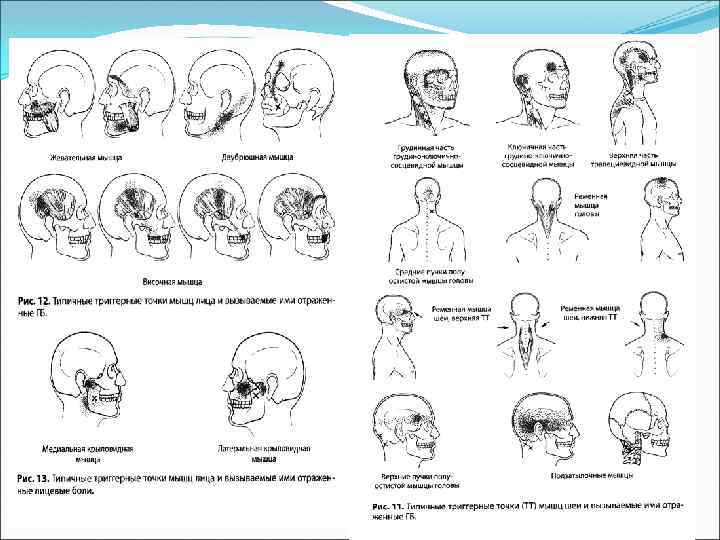 Триггерные точки Трапециевидная м Ротаторы шеи Лестничные м М поднимающая лопатку Надлопаточная Надостная Подостная м