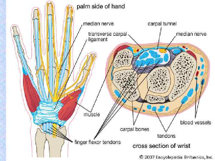 СИНДРОМ ЗАПЯСТНОГО КАНАЛА Причиной возникновения синдрома могут быть также нарушения кровообращения венозный застой, отеки у беременных, утолщения соединительно тканных структур при акромегалии, инфильтрации у больных микседемой, амилоидозом, воспалительные заболевания суставов, вазомоторные и гуморальные нарушения, вызывающие ишемию ветви срединного нерва.