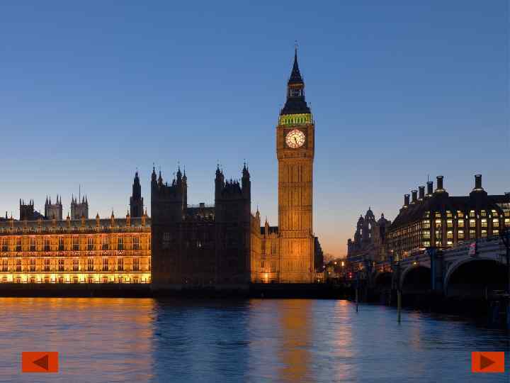 Contents • Westminster Palace – History – A plan of the Palace of Westminster in London. • • Big Ben Houses of Parliament – The political institution – The House of Commons – The House of Lords • • Westminster Hall Quiz