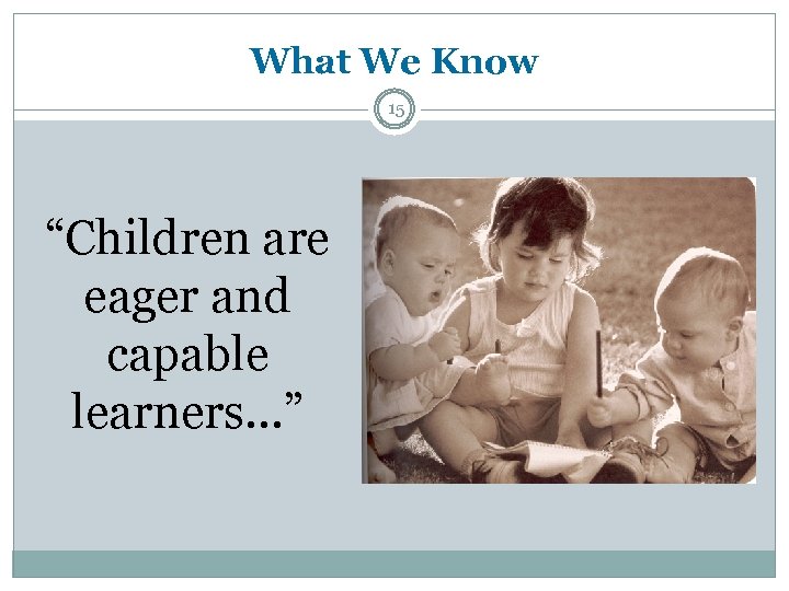 What We Know… 21 “There is a greater tragedy than being labeled a slow learner– and that is being treated as one. ”