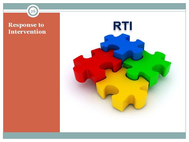 What We Know… 27 • The earlier school staff can identify students’ difficulties, the quicker and less expensive the task is to help them catch up • The longer a student goes without assistance, the longer the remediation time and the more intense the services must be