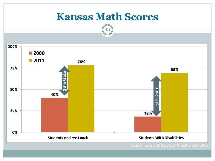 Kansas Math Scores 38% Gain 61 Source: Kansas State Department of Education