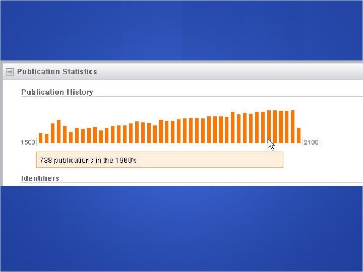 Resource Discovery System User-focus Builds on existing descriptive metadata clearly labeled Identifies all names and other identifying information for an entity Identifies significant relationships to enable collocation and navigation of the bibliographic universe Re-uses data globally for more efficient operations