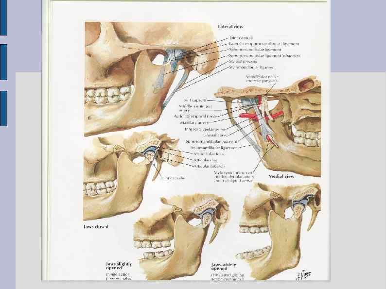 Прикрепление связок - lig. petrosphenoidale (Gruber’s) - lig. stylomandibulare - lig. stylohyoideus - lig. laterale art. temporomandibulare - lig. mallei anterior