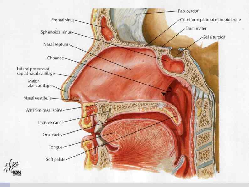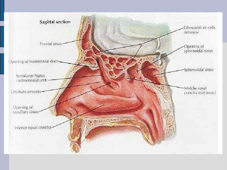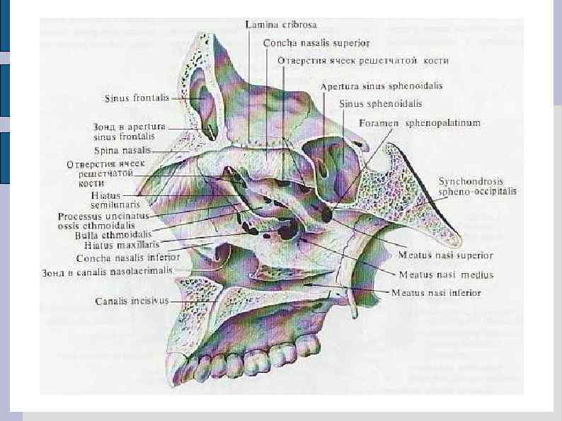 Полость носа имеет 3 хода: - верхний — открываются ячейки OE, пазуха OS; - средний — открываются пазухи OF, передние и задние ячейки OE, Гайморовы пазухи; - нижний — открывается носослезный канал