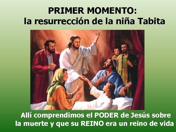 PRIMER MOMENTO: la resurrección de la niña Tabita Allí comprendimos el PODER de Jesús sobre la muerte y que su REINO era un reino de vida