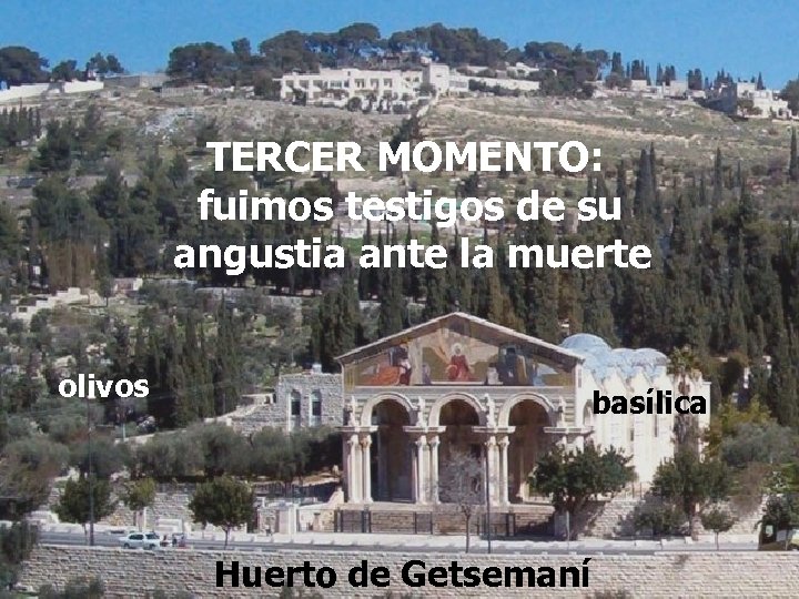 TERCER MOMENTO: fuimos testigos de su angustia ante la muerte Basíica de la Agonía Huerto de los Olivos olivos basílica Huerto de Getsemaní