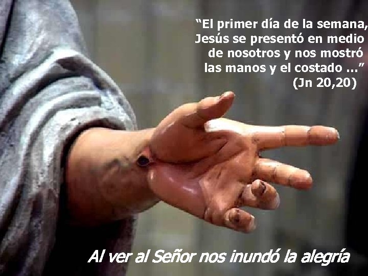 “El primer día de la semana, Jesús se presentó en medio de nosotros y nos mostró las manos y el costado …” (Jn 20, 20) Al ver al Señor nos inundó la alegría