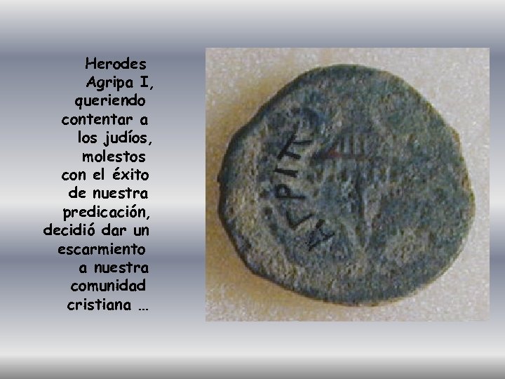 Herodes Agripa I, queriendo contentar a los judíos, molestos con el éxito de nuestra predicación, decidió dar un escarmiento a nuestra comunidad cristiana …