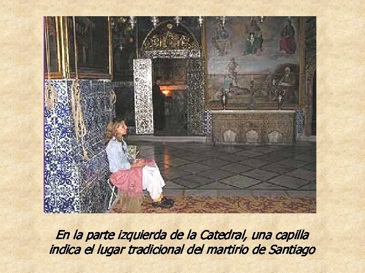 En la parte izquierda de la Catedral, una capilla indica el lugar tradicional del martirio de Santiago