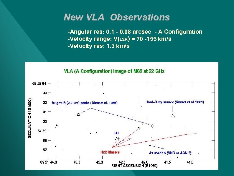 New VLA Observations -Angular res: 0. 1 - 0. 08 arcsec - A Configuration -Velocity range: V(LSR) = 70 -155 km/s -Velocity res: 1. 3 km/s