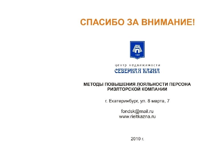 Что делать для повышения лояльности? • • Поддерживай теплые отношения внутри коллектива При найме новых сотрудников подбирай людей «созвучных» себе и подчиненным Никогда не ругай сотрудников при всех Излишне не опекай Оценивай достигнутые результаты По возможности обучай сотрудников Продвигай внутри коллектива