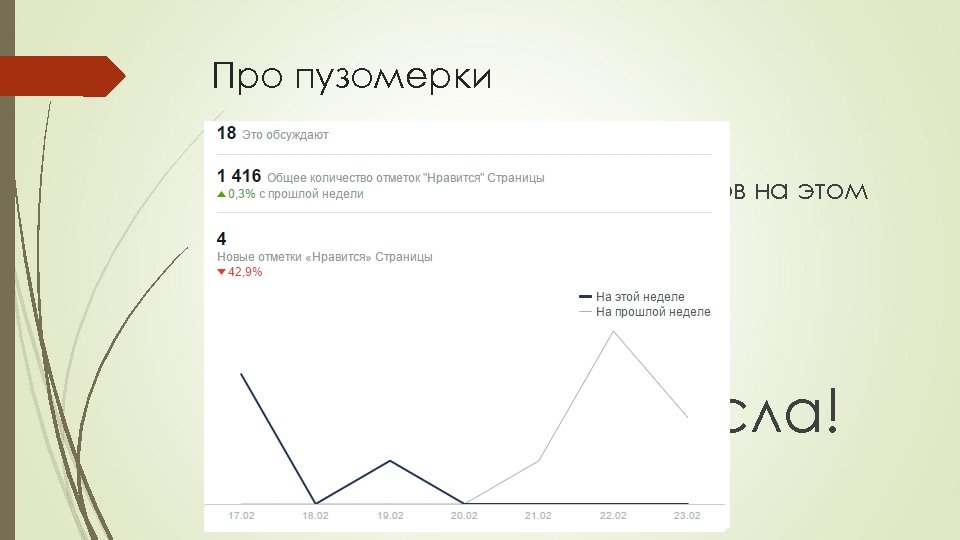 Аналитика Важно всегда понимать охват аудитории Вовлекаем ли мы людей, ? Каждому по пузомерке, каждому по нулю!