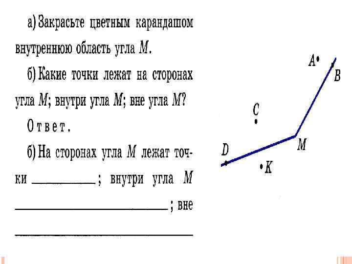 ОБЛАСТИ УГЛА Внешняя Область Внутренняя область угла