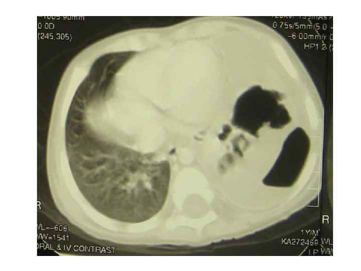 Рентгеновская компьютерная томография n РКТ высокого разрешения позволяет достоверно диагностировать бронхоэктазы, не диагностируемые даже при бронхографическом исследовании. n Бронхоэктатические поражения часто локализованы в нижних долях.