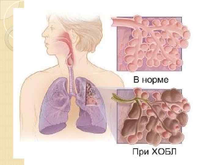 ХОБЛ Хрони ческая обструкти вная боле знь лёгких (ХОБЛ) — самостоятельное заболевание, для которого характерно частично необратимое ограничение воздушного потока в дыхательных путях. Ограничение воздушного потока, как правило, имеет неуклонно прогрессирующий характер и спровоцировано аномальной воспалительной реакцией ткани лёгких на раздражение различными патогенными частицами и газами.