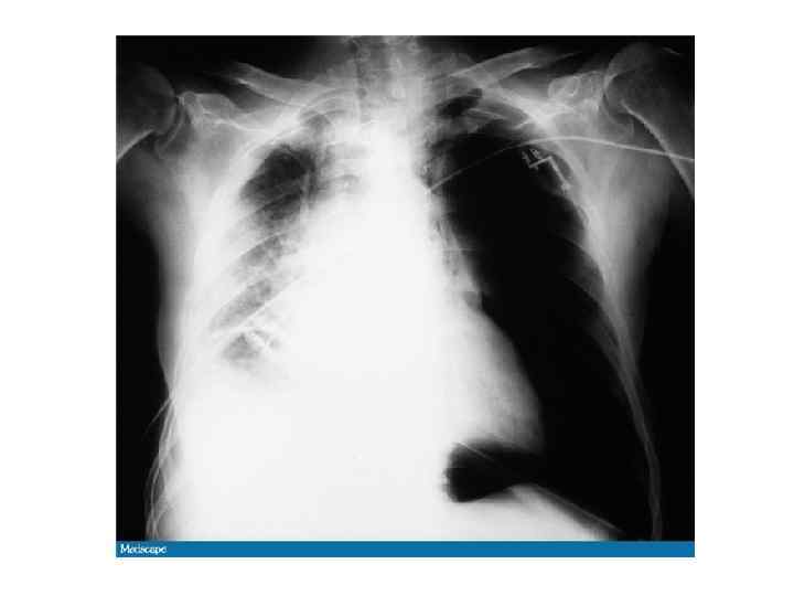 Клиника • При значитель ном накоплении транссудата обычно возникает или усиливается одышка, появляется чувство тяжести в соответствующей половине груди. Больной стремится принять вынужденное положение с приподнятой верхней частью туловища и с наклоном в сторону скопления транссудата. Фнзикальные и рентгенологи ческие симптомы аналогичны признакам скопления жидкости при экссудативном плеврите.