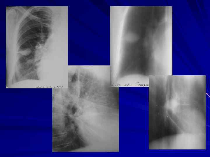Диффузная мезотелиома С момента появления обладает инфильтрирующим характером роста Болеют чаще мужчины 30 -50 лет Клинические проявления возникают после присоединения осложнений (плеврит) Раннее метастазирование: в легкое своей и противоположной стороны, плевру противоположной стороны, кости, головной мозг, печень