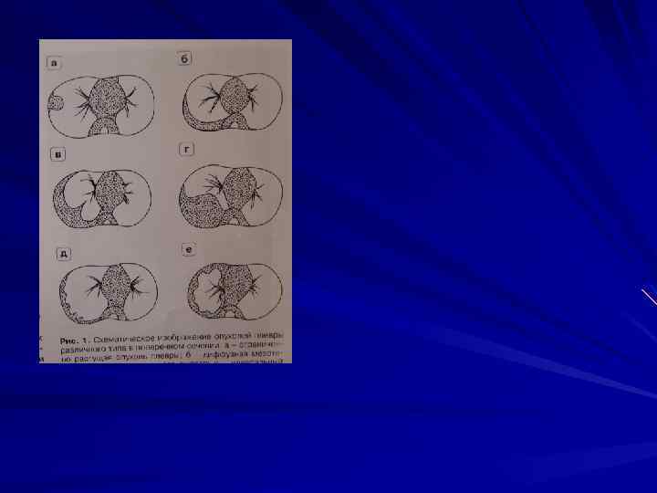 Схема вариантов осумкованных плевритов а, б- малая междолевая щель в, г- главная междолевая щель ж, з, и, к – паракостальные отделы плевральной полости д, е- осумкование в парамедиастинальных отделах